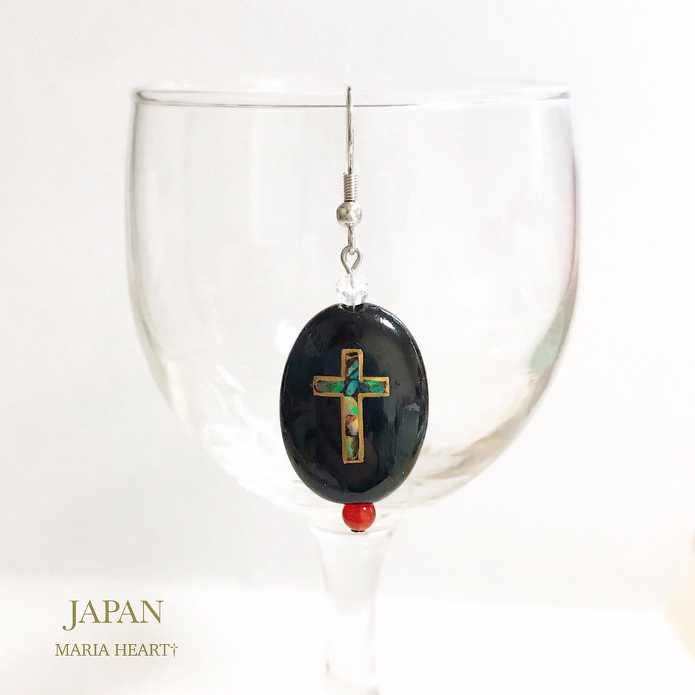 《 漆ピアス 螺鈿蒔絵 - 十字 - 》